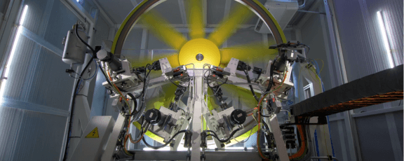 Wabtec is spinning up the future of transit braking technology at the company’s location in Piossasco, Italy. The site features a colossal yellow wheel capable of rotating at speeds up to 160 km/h (99.4 m/h). The unique, patented Multi-Axle Roller Rig is a cutting-edge test bench designed to simulate real-world train braking scenarios with unparalleled precision.